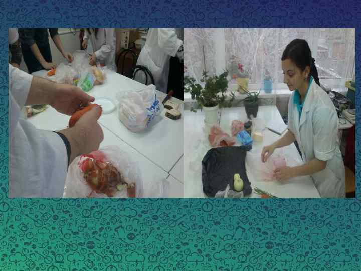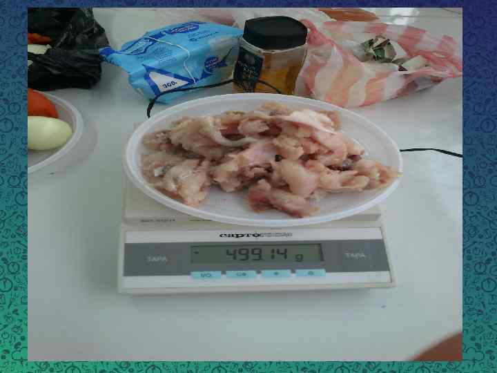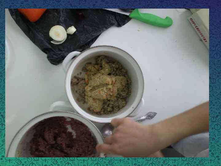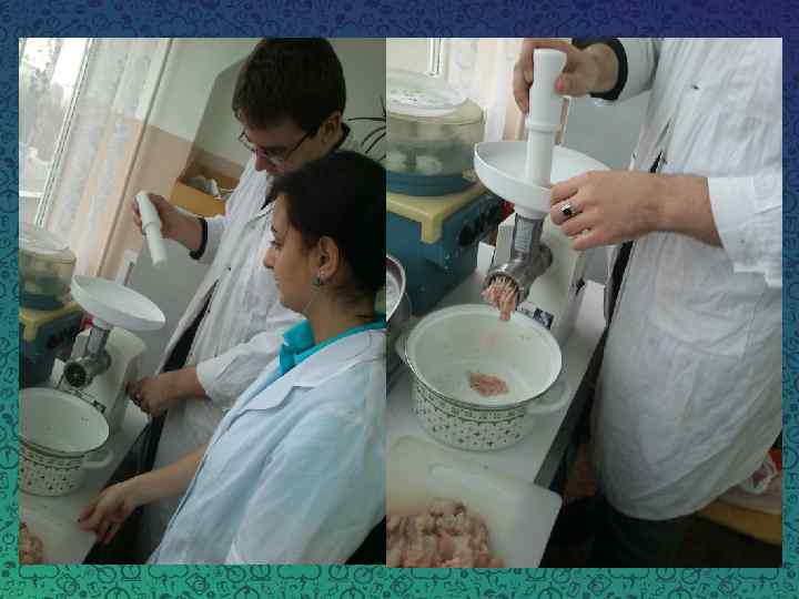Ингредиенты Контроль Образец № 1 Рыба (Толстолобик) 55% + + Образец № 2 Образец № 3 + + Чечевица - 20% 30% 40% Свёкла 7% - + + + Лук 6% + + Морковь 4% + + Масло сливочное 4% + + Зелень (укроп) 2% + + Специи 0, 5% + + В качестве оболочки мы использовали искусственную оболочку.
