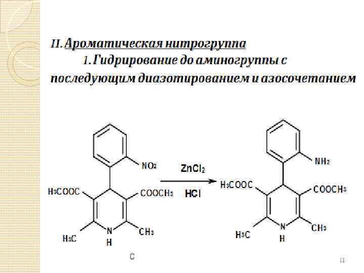 Производные дигидропиридина В 1980 90 х годах были синтезированы эффективные вазодилататоры и антигипертензивные средства, производные 1, 4 – дигидропиридина. Их структурной основой является 1, 4 дигидро 2, 6 диметилпиридин 3, 5 дикарбоновая кислота. В молекулах этих веществ имеются две сложноэфирные группы, в положении 4 присоединён фенильный радикал с соответствующими заместителями. Синтез препаратов состоит в конденсации ароматического альдегида с производными ацетоуксусного эфира.