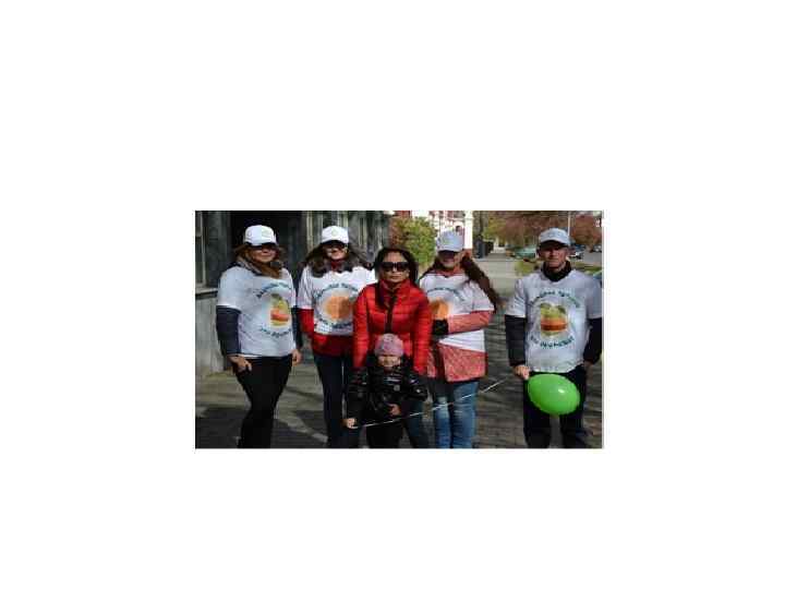 Городские акции • Акции – действенный инструмент донесения до большого количества людей идеи о необходимости соблюдения правил здорового питания. Проведенные в регионах РК акции, как правило, были приурочены к какому-либо событию, что позволяло привлекать к ним большие массы людей. Всего проведено 14 акций, охвативших 1285 человек. • На акциях важно создавать атмосферу праздника вокруг идеи здорового питания, побудить людей задуматься о значимости питания в управлении здоровьем. Что и было достигнуто.