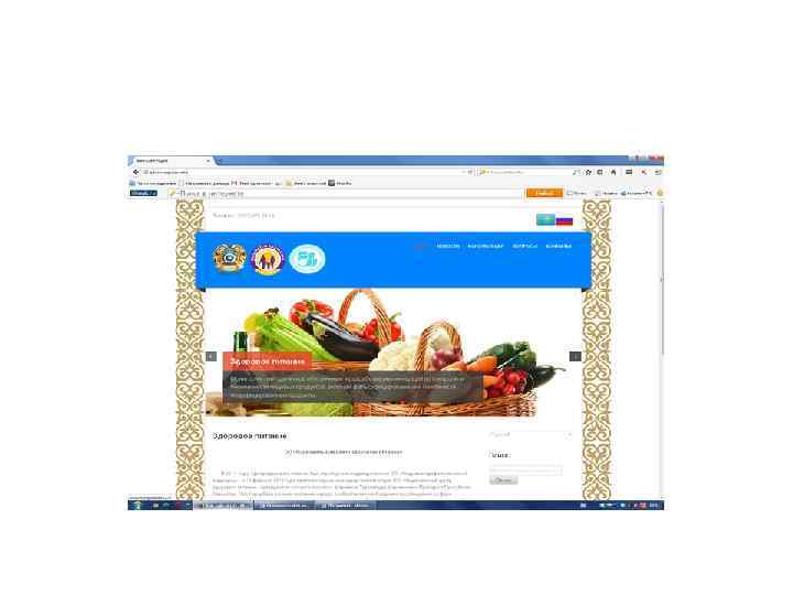Министерство здравоохранения и социального развития РК Комитет по защите прав потребителей Министерства национальной экономики РК ОО «Национальный центр Здорового питания» О РЕЗУЛЬТАТАХ РЕАЛИЗАЦИИ СОЦИАЛЬНО-ЗНАЧИМОГО ПРОЕКТА «ФОРМИРОВАНИЕ У НАСЕЛЕНИЯ НАВЫКОВ ЗДОРОВОГО ПИТАНИЯ И БЕЗОПАСНОСТИ ПИЩЕВЫХ ПРОДУКТОВ» В РАМКАХ ГОСУДАРСТВЕННОЙ ПРОГРАММЫ РАЗВИТИЯ ЗДРАВООХРАНЕНИЯ РК «САЛАМАТТЫ ҚАЗАҚСТАН» Алматы, 25 декабря 2014 г.