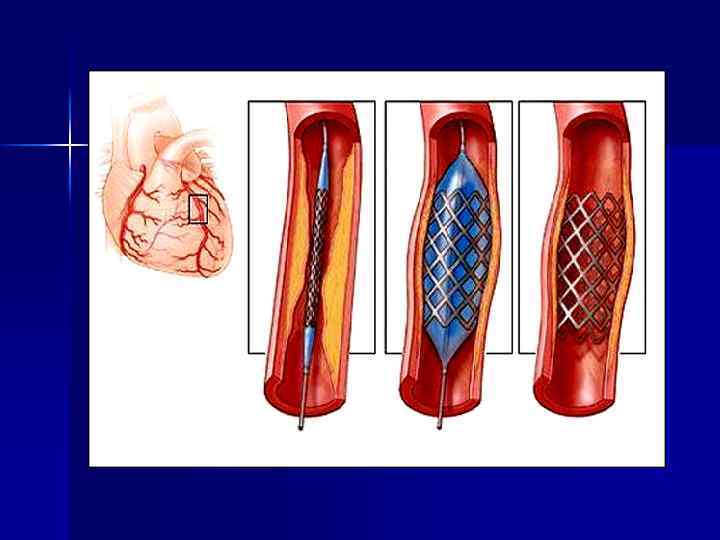 Хирургическое лечение Направлено на устранение стеноза или окклюзии пораженной артерии. 1. Стентирование(Стент — это тонкая металлическая трубочка, состоящая из проволочных ячеек, раздуваемая специальным баллоном. Он вводится в пораженный сосуд и, расширяясь, вжимается в стенки сосуда, увеличивая его просвет. Так налаживается кровоснабжение сердца. )