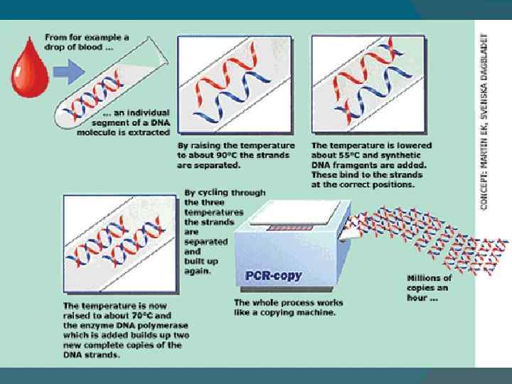 ПЦР протекает автоматически в программируемом термостате термоциклере (амплификаторе). Трёхступенчатый цикл, в результате которого получаются точные копии идентифицируемого участка матричной ДНК, повторяют 30 50 раз в соответствии с заданной программой термоциклера. В первом цикле олигопраймеры гибридизуются с исходной матричной ДНК, а затем (в последующих циклах) и с вновь синтезированными молекулами ДНК по мере их накопления в реакционной смеси. В последнем случае синтез ДНК заканчивается не вследствие изменения температурного режима, а по достижении ДНК полимеразной границы амплифицированного участка, что и определяет размер вновь синтезированного участка ДНК с точностью до одного нуклеотида.