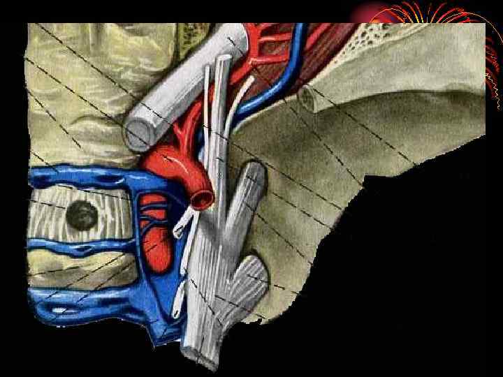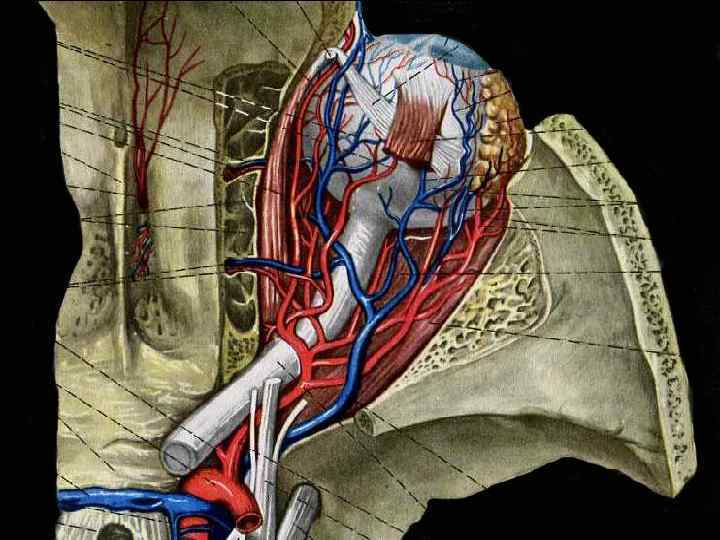 Вены глазницы и глазного яблока • Верхняя глазная вена (v. ophthalmica superior) – через верхнюю глазничную щель вступает в полость черепа, где сразу же вливается в пещеристую пазуху • В нее впадают: • Вены глазного яблока: • Центральная вена сетчатки • Ресничные вены • Вортикозные вены