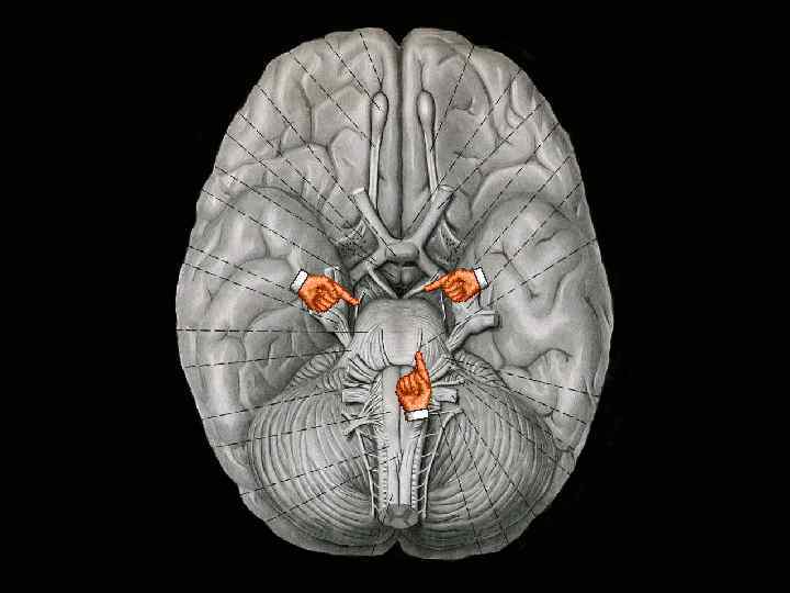 Двигательная иннервация глаза • Мышцы каждого глаза иннервируются • Глазодвигательным • Блоковым • Отводящим нервами • Ядра этих 3 пар нервов расположены по обе стороны от средней линии в покрышке среднего мозга и в нижних