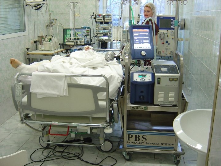 Interventional Lung Assist (ILA) management • MAP 80 - 100 mm. Hg • cannulation: per seldinger art. 17 Fr 19 Fr. ven. 19 Fr • QBlood 1. 9 -2. 4 l/min • O 2 Flow-Oxyg. 12 l/min • ACT 150 sec. 120 sec 21 Fr.