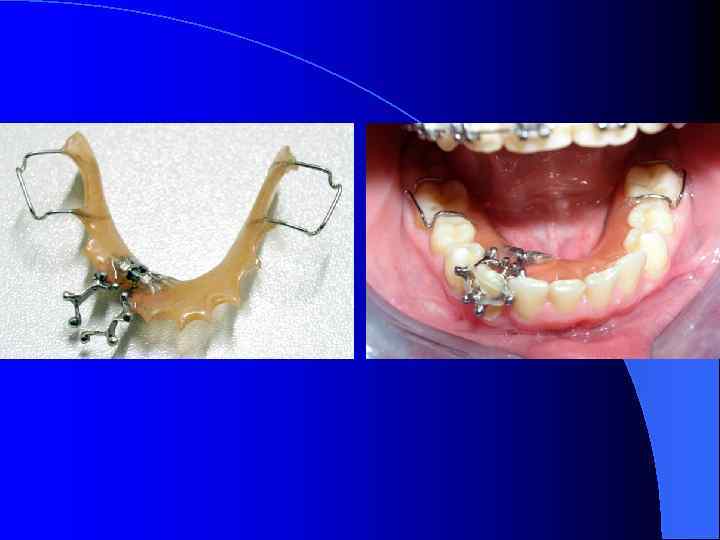 Результаты лечения l Съёмные эстетические ретенционные каппы. l Съёмный ретенционный аппарата с наклонной плоскостью.