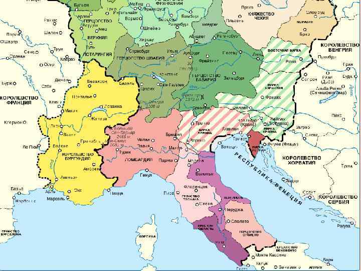 II. СОБЫТИЯ В ОТДЕЛЬНЫХ РЕГИОНАХ ЕВРОПЫ 1. Образование Священной Римской империи (король Оттон I, ганзейский союз) 2. Создание Франкского государства (Гуго Капет, династия Капетингов, постепенное укрепление королевской власти, династия Валуа) 3. Завоевание Англии норманнами (Вильгельм I Завоеватель, Великая хартия вольностей, парламент) 4. История взаимоотношений между Англией и Францией, Столетняя война (часть материала в раздатках) 5. Испания (оккупация маврами, войны между христианскими и мавританскими государствами) (часть материала в раздатках) 6. Морские республики: Венеция, Генуя, Пиза, Амальфи (см раздатки)