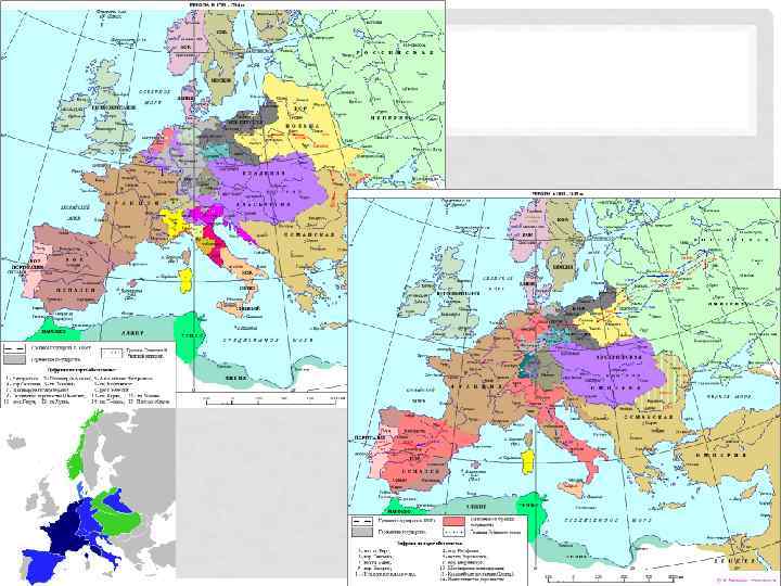 БОРЬБА ЗА ГОСПОДСТВО В ЕВРОПЕ Спокойствие до 1740, вслед за этим усиление Пруссии и война с Австрией 3 пары антагонистов: 1. англо французская 2. австро французская 3. австро прусская Перегруппировка сил: Англия+Пруссия, Франция+Австрия 1757 (на карте синим – англо прусская коалиция; зеленым – антипрусская коалиция) Семилетняя война 1756 1763 потрясающие победы … и смерть … Итоги: Испания Филипп V из династии Бурбонов отрёкся от всех прав на французский престол и был признан королем Испании и ее колоний, с условием, что король испанский никогда не будет одновременно ко ролем французским. Испания должна была уступить Австрии Неаполитанское королевство, Сардинию, часть Тосканы, Миланское герцогство и Испанские Нидерланды; Англии — Гибралтар и остров Минорка; Савойе — Сицилию.