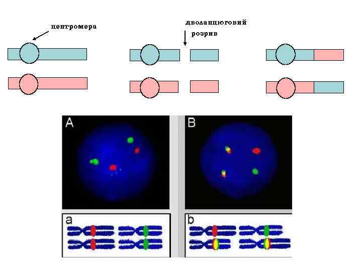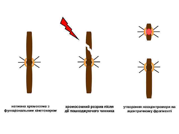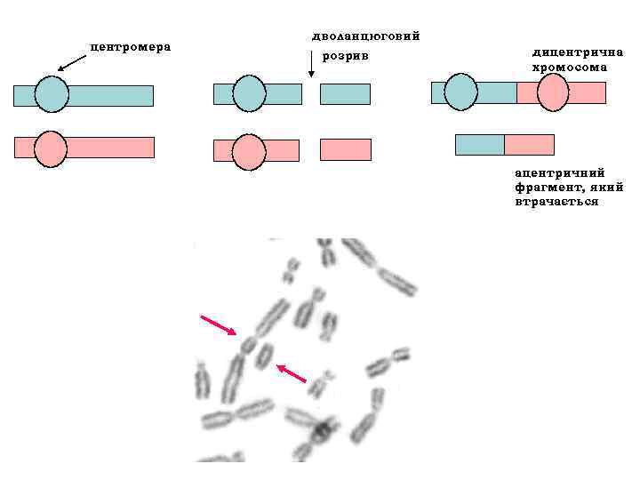 центромера дволанцюговий розрив дицентрична хромосома ацентричний фрагмент, який втрачається