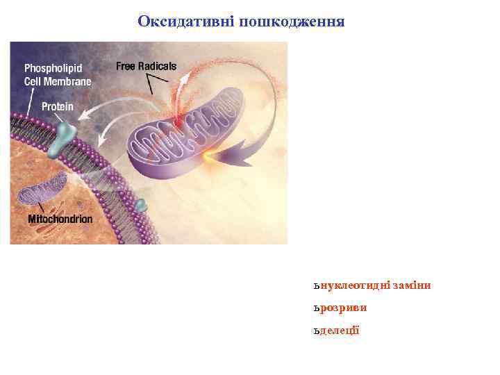 Оксидативні пошкодження ь нуклеотидні заміни ь розриви ь делеції