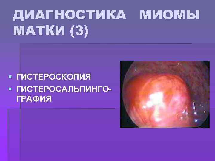 ДИАГНОСТИКА МИОМЫ МАТКИ (3) § § ГИСТЕРОСКОПИЯ ГИСТЕРОСАЛЬПИНГОГРАФИЯ