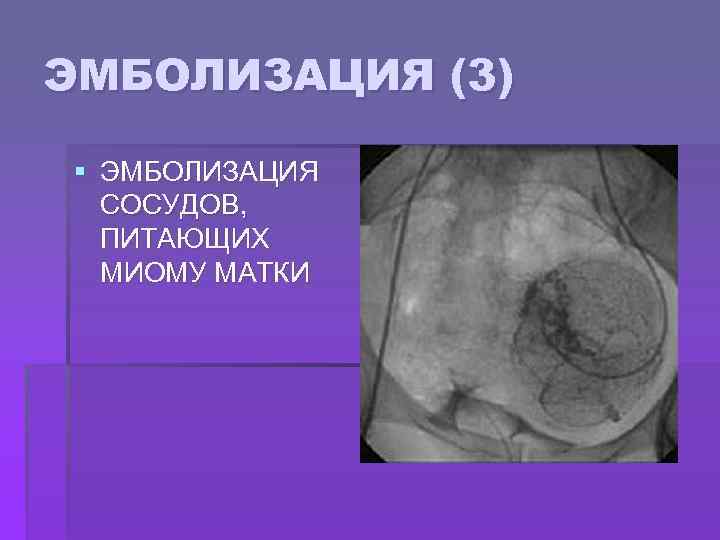 ЭМБОЛИЗАЦИЯ (3) § ЭМБОЛИЗАЦИЯ СОСУДОВ, ПИТАЮЩИХ МИОМУ МАТКИ