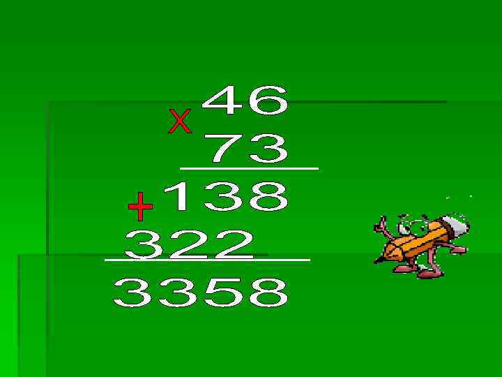 46 Х 73= 46 Х ( 70+3)=46 Х 70+46 Х 3
