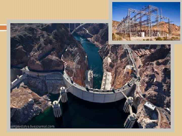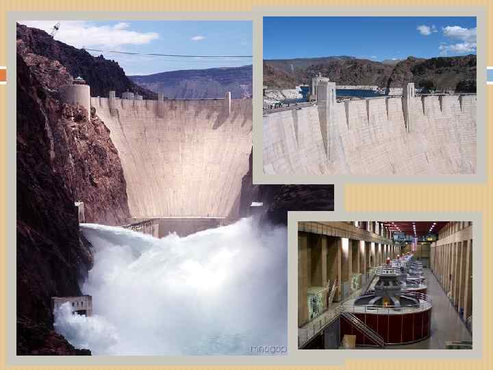 Принцип работы ГЭС Вода загнана в резервуар – через впускные башни попадает в турбину – генерато Трансформатор – провода - человек