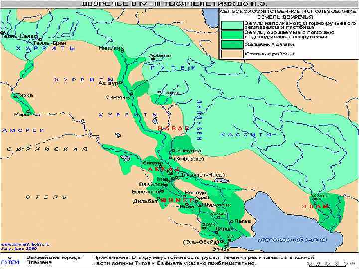 МЕЖДУРЕЧЬЕ: РОЖДЕНИЕ ЦИВИЛИЗАЦИИ . Природа Древней Месопотамии. Само название Месопотамия указывает на территорию между реками. Ведь в переводе с древнегреческого языка Месопотамия означает Междуречье. Устья Тигра и Евфрата перед впадением в Персидский залив образуют обширную дельту из многих отдельных речных рукавов. Дельта охватывает пространство треугольной формы, напоминающее древнегреческую букву дельта. Отсюда происходит и название. Местность в низовьях Тигра и Евфрата сильно заболочена. Приливы из Персидского залива заносили сюда горько-соленую воду. Много месяцев в году здесь стоит жара. Понадобилось немало времени, чтобы люди научились с помощью каналов и дамб осушать болотистые места и орошать пустыню. Можно сказать, что труд людей сделал низовья Тигра и Евфрата пригодными для жизни и плодородными. 2. Шумер - древнейшая цивилизация. В нижнем течении Тигра и Евфрата поселился народ шумеры. С шумерами связана одна из загадок истории Древнего мира. Неизвестно, откуда они пришли в Месопотамию. Язык шумеров не похож ни на какой другой. По сохранившимся изображениям мы знаем, что у шумеров были овальные лица с большими глазами. Кажется, что это пришельцы из других миров. И мужчины, и женщины носили юбки из ткани, шерстяной пряжи или листьев. Мужчины брили головы, а у женщин были красивые головные уборы или накидки. 1