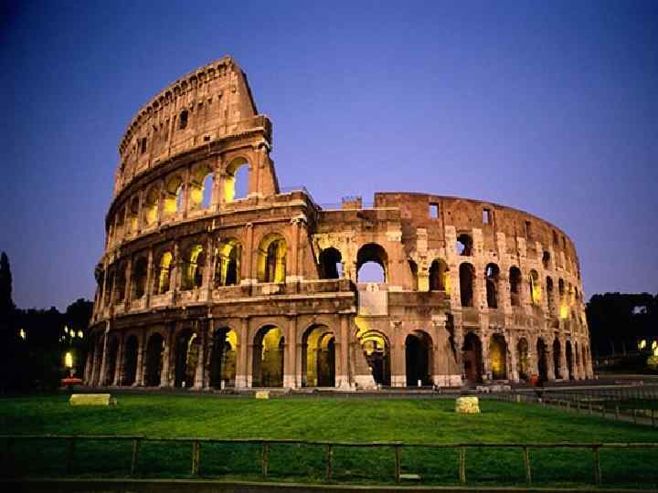 Колизей — самый большой из древнеримских амфитеатров, — один из знаменитых древних памятников древнего Рима и одно из самых примечательных сооружений в мире. Находится в Риме, в ложбине между Эсквилинским, Палатинским и Целиевским холмами, на том месте, где некогда был пруд, относившийся к «Золотому Дому» Нерона. Колизей первоначально назывался Амфитеатром Флавиев, потому что он был коллективным сооружением императоров династии Флавиев: Веспасиана, Тита и Домициана. Строительство велось на протяжении 5 лет, с 75 -80 гг.