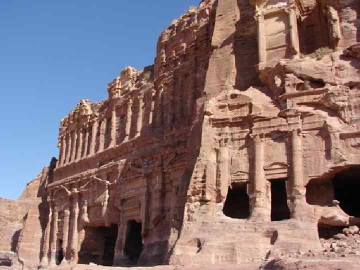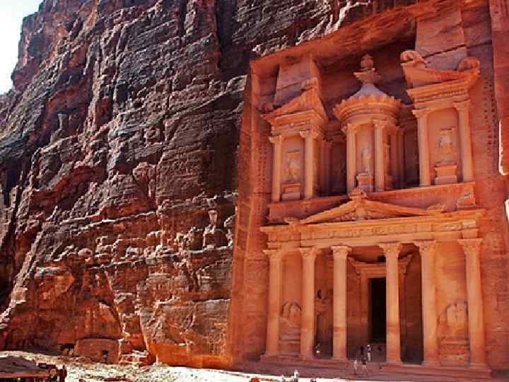 Город Петра Столица Едома или Идумеи, позже столица Набатейского царства, главный город сыновей Исава. Город расположен на территории современной Иордании, на высоте более 900 метров над уровнем моря и 660 метров над окружающей местностью, долиной Аравы, в узком каньоне Сик. Проход в долину — через ущелья, расположенные на севере и на юге, тогда как с востока и запада скалы отвесно обрываются, образуя естественные стены до 60 метров в высоту. В наши дни около полумиллиона туристов приезжают в Иорданию каждый год, чтобы посмотреть на Петру, строения которой свидетельствуют о ее славном прошлом.
