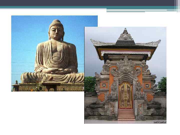 В отличие от других мировых религий количество миров в буддизме практически бесконечно. Буддийские тексты говорят, что их больше, чем капель в океане или песчинок в Ганге. В каждом из миров есть свои суша, океан, воздух, множество небес, где обитают боги, и ступеней ада, населённых демонами, духами злых предков -- претами и др. В центре мира стоит огромная гора Меру, окружённая семью горными хребтами. На вершине горы расположено “небо 33 богов”, возглавляемых богом Шакрой. В буддизме в отличие от христианства и ислама, нет церкви, но есть община верующих -- сангха. Это духовное братство, помогающее в продвижении по буддийскому пути. Община обеспечивает своим членам жёсткую дисциплину (виная) и руководство опытных наставников.