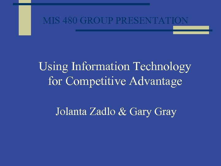 MIS 480 GROUP PRESENTATION Using Information Technology for Competitive Advantage Jolanta Zadlo & Gary Gray