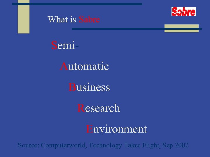 What is Sabre Semi. Automatic Business Research Environment Source: Computerworld, Technology Takes Flight, Sep 2002