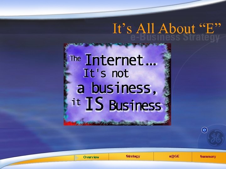 It’s All About “E” Overview Strategy e@GE Summary
