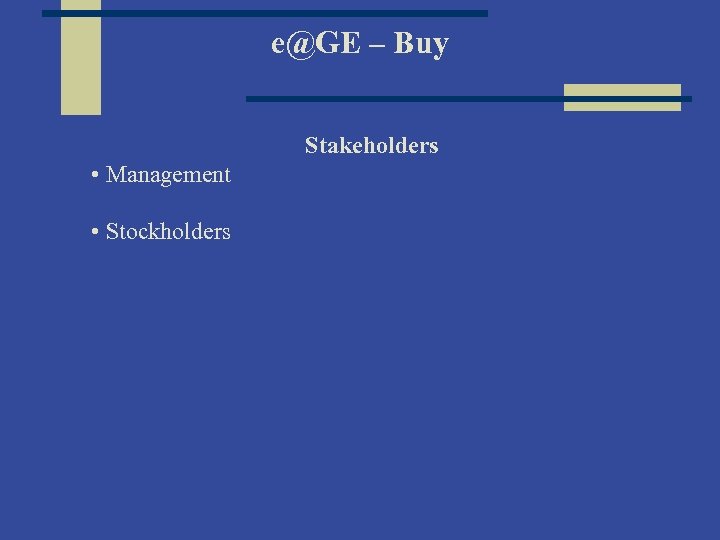 e@GE – Buy Stakeholders • Management • Stockholders