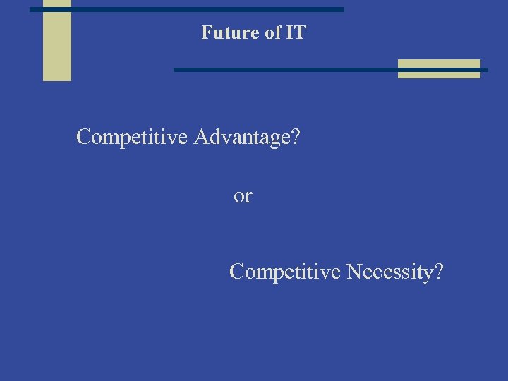 Future of IT Competitive Advantage? or Competitive Necessity?