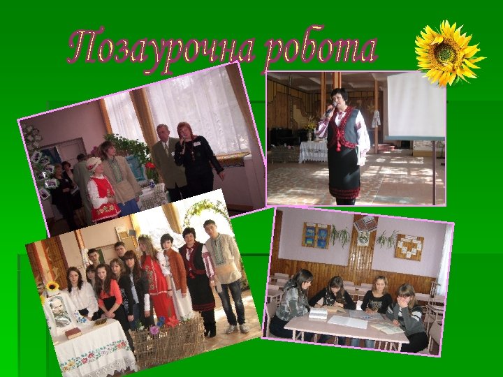 § Розвиток творчих здібностей учнів через залучення учнів до проведення вечорів, до вікторин, конкурсів, олімпіад, презентацій та пошуково-дослідної діяльності; § Підготовка та проведення мовно літературних годин, літературних свят; § Робота мовно-літературного гуртка “Дивослово”