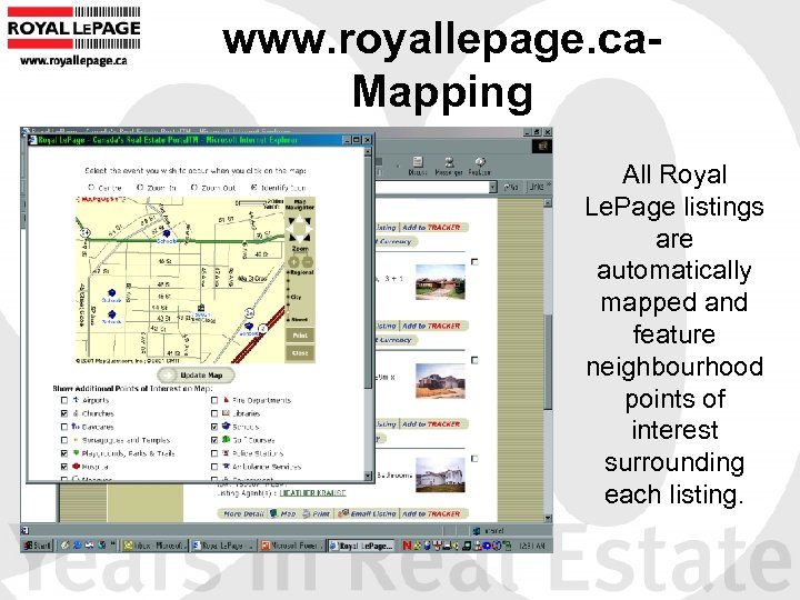 www. royallepage. ca. Mapping All Royal Le. Page listings are automatically mapped and feature neighbourhood points of interest surrounding each listing.