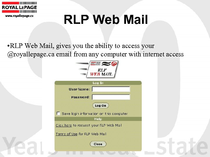 RLP Web Mail • RLP Web Mail, gives you the ability to access your @royallepage. ca email from any computer with internet access