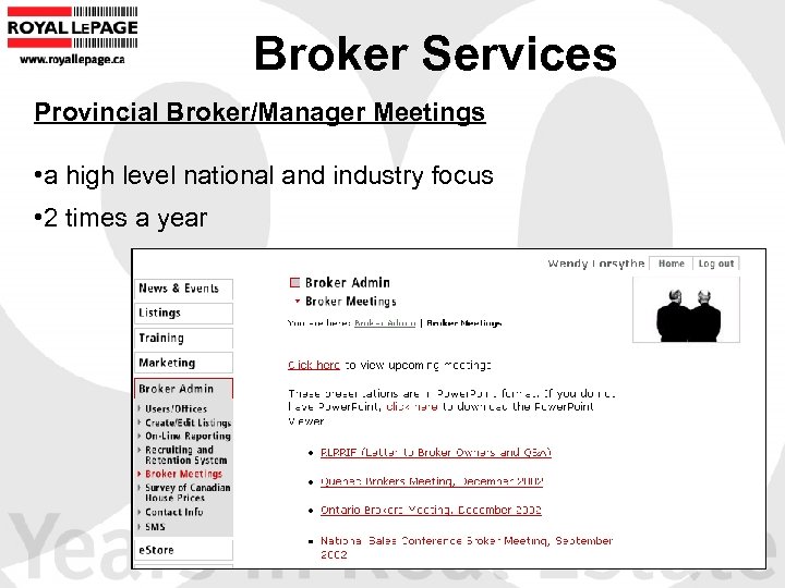 Broker Services Provincial Broker/Manager Meetings • a high level national and industry focus • 2 times a year