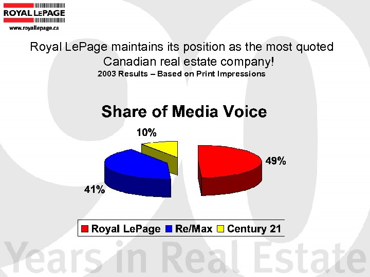 Royal Le. Page maintains its position as the most quoted Canadian real estate company! 2003 Results – Based on Print Impressions