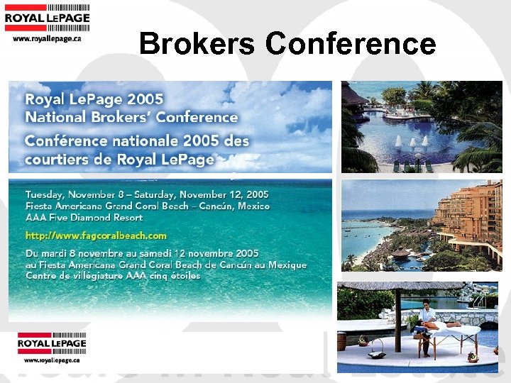 How Royal Le. Page Supports Conversions 1) Setting the Standard- A complete guide on registering or changing business/trade name, RLP graphics and information about RLP. 2) The Royal Le. Page Broker Guide- A tool to guide you through the preparation stage towards your announcement to your team and community. 3) The Royal Le. Page Intranet Business Builder- An area on the RLP Intranet site which details all RLP products/services and programs. 4) Announcement Package- Sample communication tools such as ad mat, press release, customer letter, etc. in preparation for your announcement to your team and community. 5) Support- Professional quality services from each member of the RLP group in your endeavor to purchasing, announcing and maintaining your own RLP franchise. 6) Announcement Day Orientation- A full presentation to your Realtors outlining the products and services they now have access to as Royal Le. Page Realtors. 7) Launch Kit- Materials and promotional items to get you started as Royal Le. Page. Includes stationary, envelopes, Buyers Guides, Sellers Guides, Presentation Folders, note cards, etc. 8) Agent Welcome Kit- Personalized portfolio, welcome letter, name badge, and lapel pin 9) Manager, Broker Services (Nelia Carreiro) to assist you in organizing for the announcement.