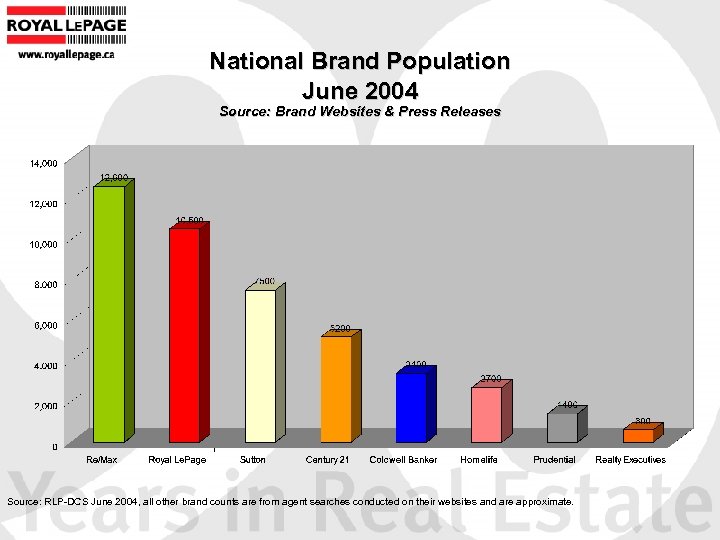 National Brand Population June 2004 Source: Brand Websites & Press Releases Source: RLP-DCS June 2004, all other brand counts are from agent searches conducted on their websites and are approximate.