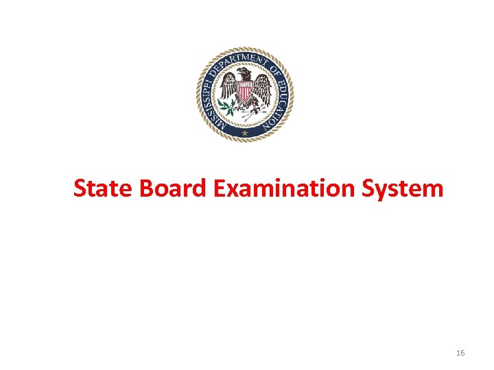 Next Steps for MDE § Continue to meet with stakeholder groups (K-12 and IHL) to: Ø Review findings of the alignment study (DONE) Ø Develop a crosswalk (IN PROGRESS) Ø Determine 9 -12 courses (IN PROGRESS) Ø Make resources known to stakeholders (IN PROGRESS) Ø Align/Revise PK 3 and PK 4 guidelines § Conduct regional awareness sessions /webinars through RESAs (DONE) § Plan work with the regional laboratories, technical assistance providers, and other groups (IN PROGRESS) § Format the CCSS to reflect current curriculum structure. (TO BE DONE -TBD) § Revise/develop instructional materials (suggested teaching strategies, resources, and assessment aids) and offer training (IN PROGRESS) § Determine which policies/procedures need adjustment (TBD) § Plan transition to new assessments (IN PROGRESS) § Continue working with PARCC to implement assessments (IN PROGRESS) 15