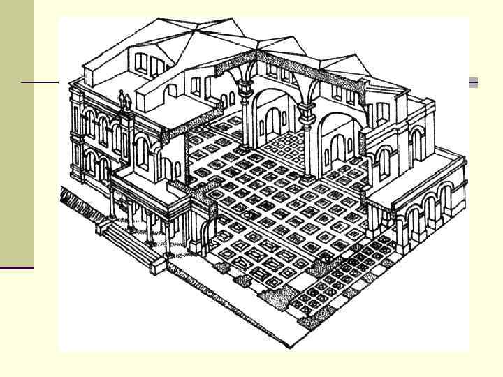 Базиліка – це прямокутна у плані споруда, розділена усередині рядами колон або стовпів на 3 -5 нав. Середня нава, вища й освітлюється через вікна над покрівлею бічних нав.
