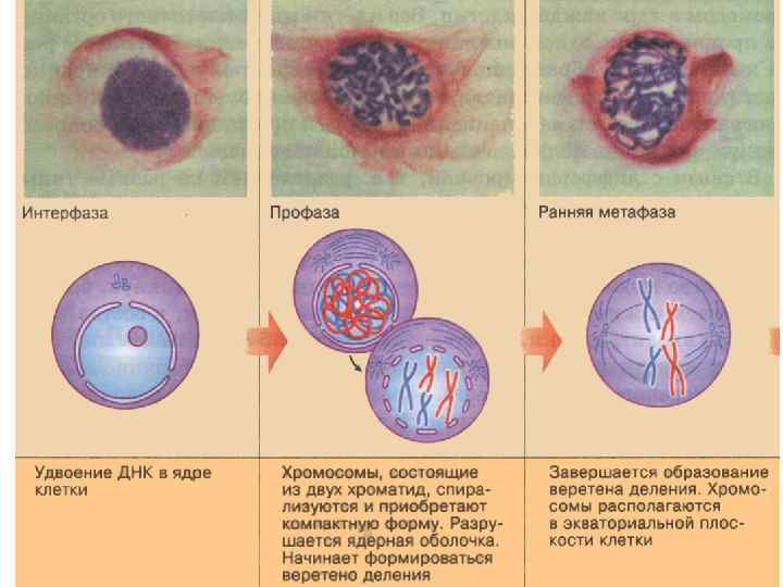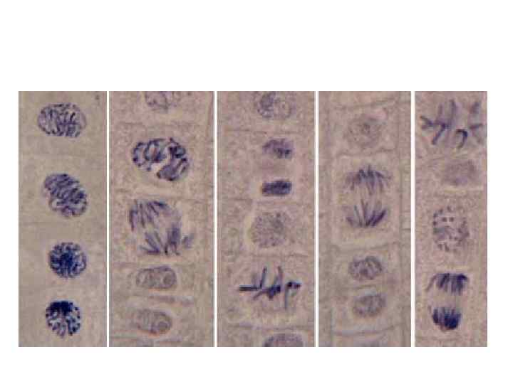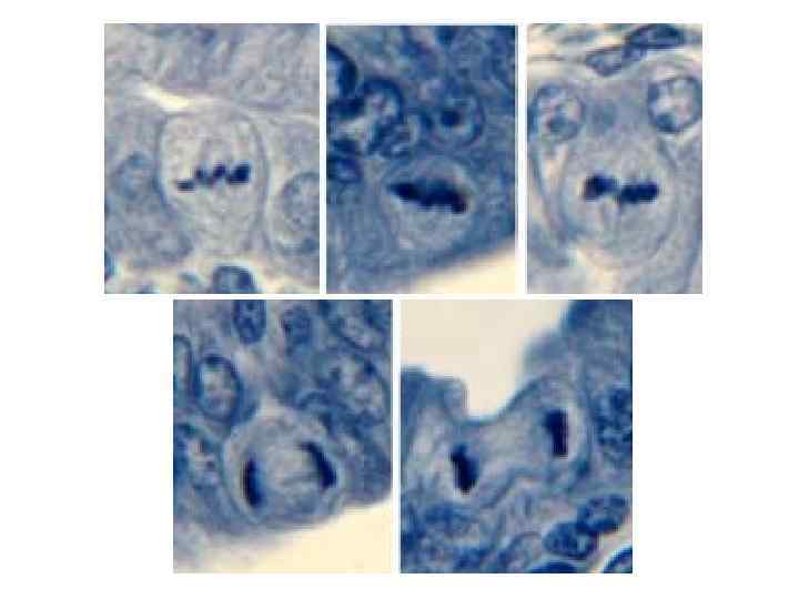 Стадии клеточного цикла А – интерфаза; Б – профаза; В – метафаза; Г – анафаза; Д - телофаза