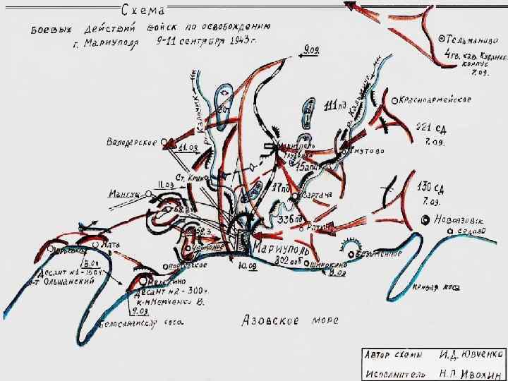 1 вересня 1943 року командуючий 44ї армії генерал-майор В. Хоменко віддав наказ 221 -й та 130 -й стрілецьким дивізіям про початок наступу в напрямку Маріуполя.