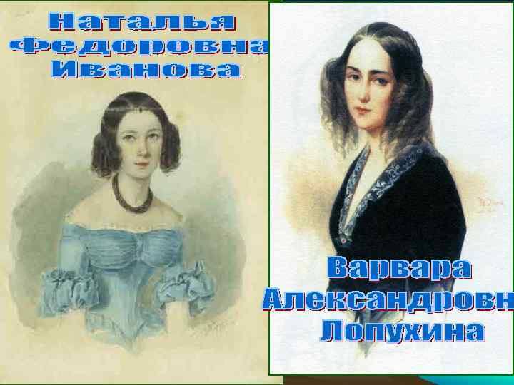 • Екатерина Александровна Сушкова, заставившая юного Лермонтова испытать всю жестокость неразделенной любви, похожей на обман Е. А. Сушкова обращалась с М. Ю. Лермонтовым как с мальчиком, но отдавала должное его уму. Расстались мы; но твой портрет Я на груди моей храню: Как бледный призрак лучших лет, Он душу радует мою. «Расстались мы. . . »