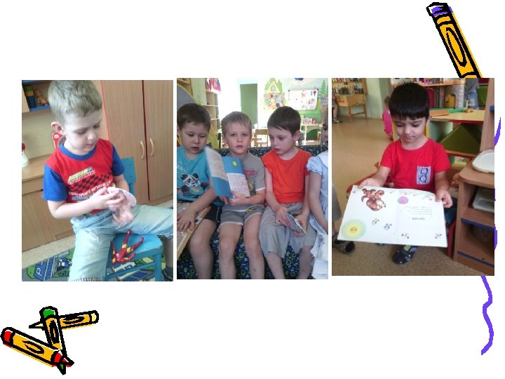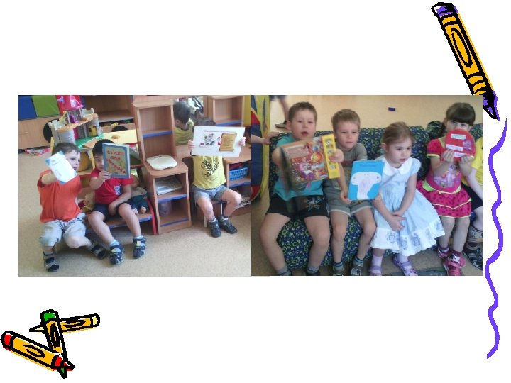 Сюжетно-ролевая игра «В библиотеке» . Цель: расширить кругозор детей, научить детей правильно пользоваться услугами библиотеки, применять знания литературных произведений, ранее полученных на занятиях, закрепить знания о профессии библиотекаря, воспитать уважение к труду библиотекаря и бережное отношение к книге, расширить словарный запас детей: «библиотека» , «профессия» , «библиотекарь» , «читальный зал» . Совместная творческая деятельность: «Изготовление закладок для книг» . Цель: развитие творческого воображения, закрепление художественных навыков.