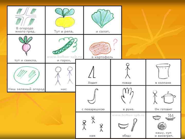 Где можно использовать карточкисхемы? n для обогащения словарного запаса, n при обучении составлению рассказов, n при пересказах художественной литературы, n при отгадывании и загадывании загадок, n при заучивании стихов.
