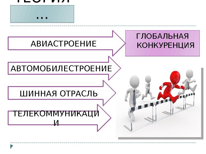 ГЛОБАЛЬНАЯ КОНКУРЕНЦИЯТЕОРИЯ … АВИАСТРОЕНИЕ АВТОМОБИЛЕСТРОЕНИЕ ШИННАЯ ОТРАСЛЬ ТЕЛЕКОММУНИКАЦИ И