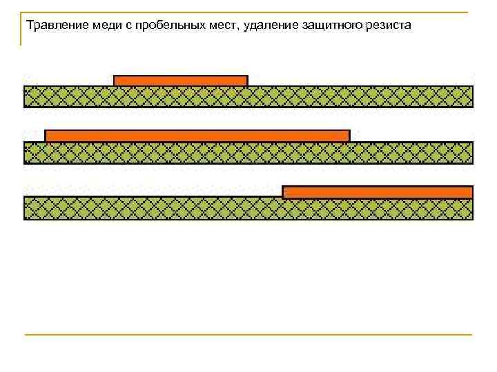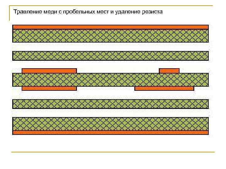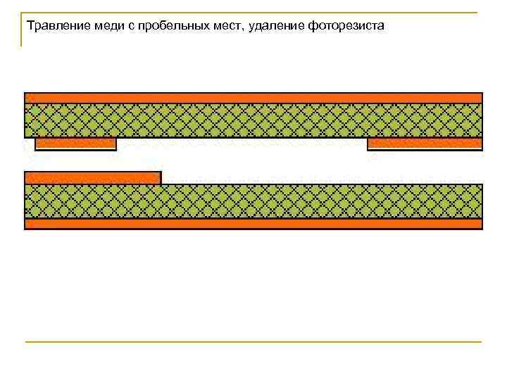 Травление меди с пробельных мест и удаление резиста