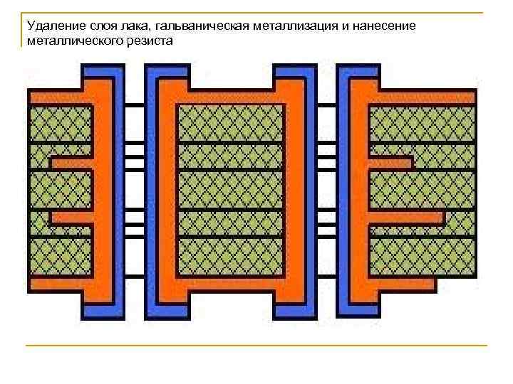 Удаление слоя лака, гальваническая металлизация и нанесение металлического резиста