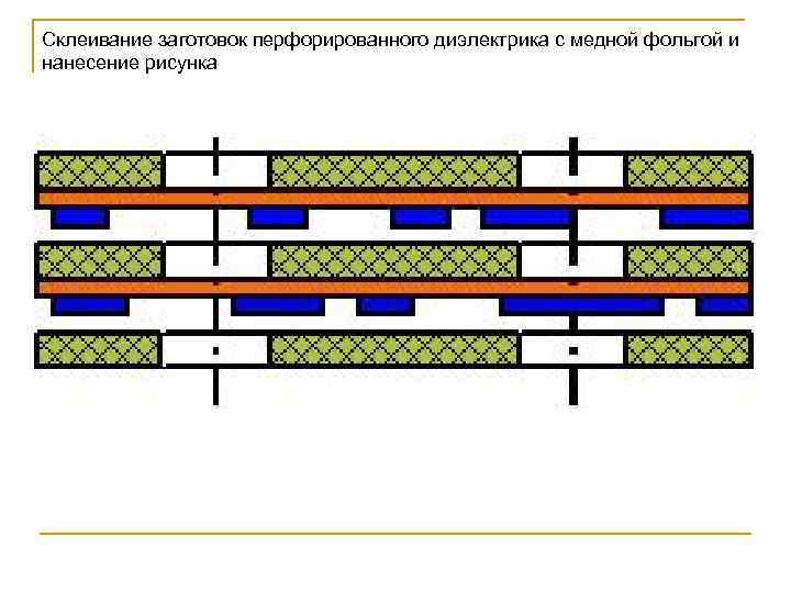 Склеивание заготовок перфорированного диэлектрика с медной фольгой и нанесение рисунка