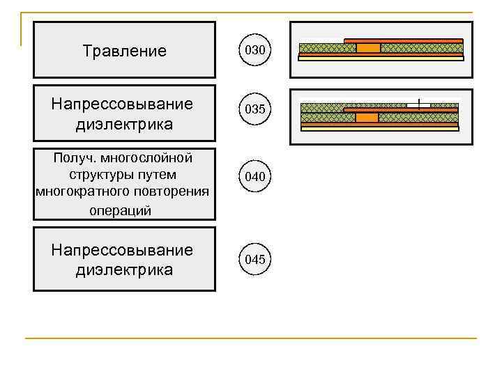 Травление 030 Напрессовывание диэлектрика 035 Получ. многослойной структуры путем многократного повторения операций Напрессовывание диэлектрика 040 045