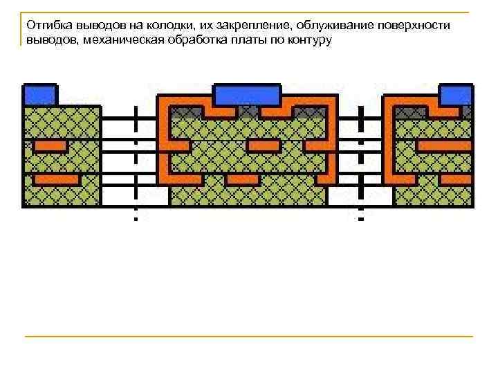 Отгибка выводов на колодки, их закрепление, облуживание поверхности выводов, механическая обработка платы по контуру