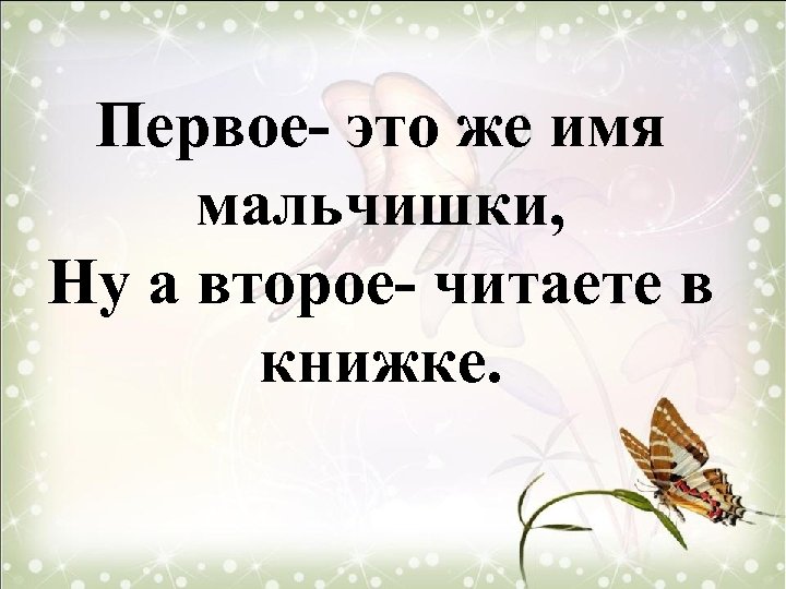 Первое- это же имя мальчишки, Ну а второе- читаете в книжке.