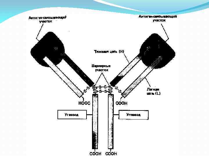 Иммуноглобулины • Гамма-глобулиновая фракция • 5 классов: Ig. M, Ig. G, Ig. A, Ig. E, Ig. D 2 тяжелых цепи 5 классов: γ, α, μ, δ, ε Структура определяет принадлежность к классу (Ig. M, Ig. G, Ig. A, Ig. E, Ig. D) 2 легких цепи 2 типа: κ, λ Определяет тип молекулы (Ig. M-κ, Ig. M-λ, Ig. G-κ, Ig. G-λ, Ig. A-κ, Ig. A-λ, Ig. E-κ, Ig. E-λ, Ig. D -κ, Ig. D-λ)