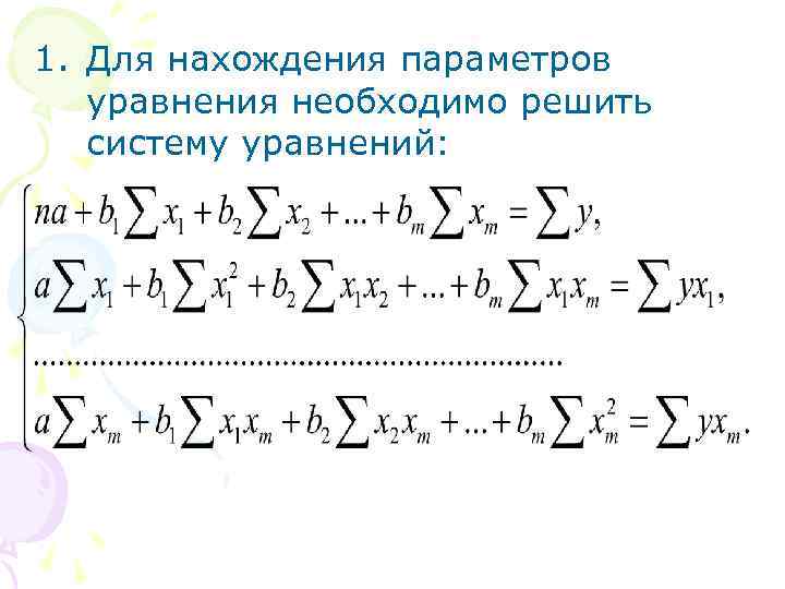 1. Для нахождения параметров уравнения необходимо решить систему уравнений: